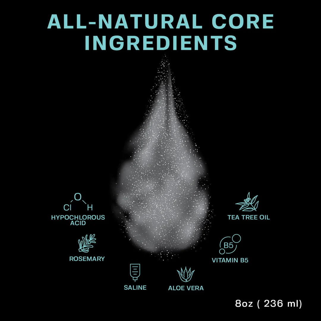 Hypochlorous acid and saline spray for piercing aftercare combines healing power for new and existing piercings, bumps, keloids, and general upkeep, including tattoo aftercare and wound management. Enhanced piercing care with HOCL & saline boosts cleansing efficacy for all types of body piercings. Versatile piercing cleaner and wound wash with hypochlorous acid and saline effectively cleanse and soothe piercings, including keloid bumps, for seamless aftercare.